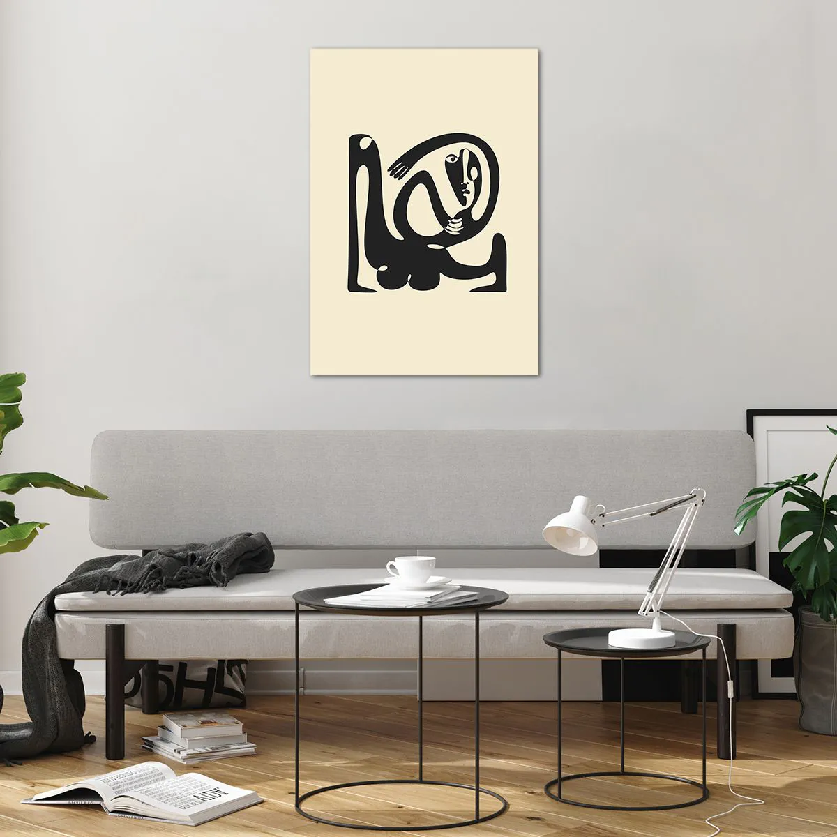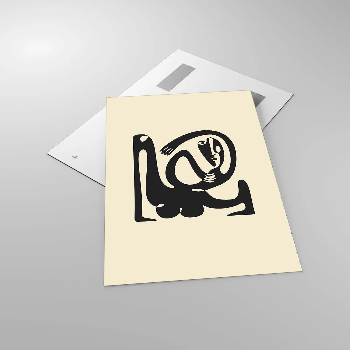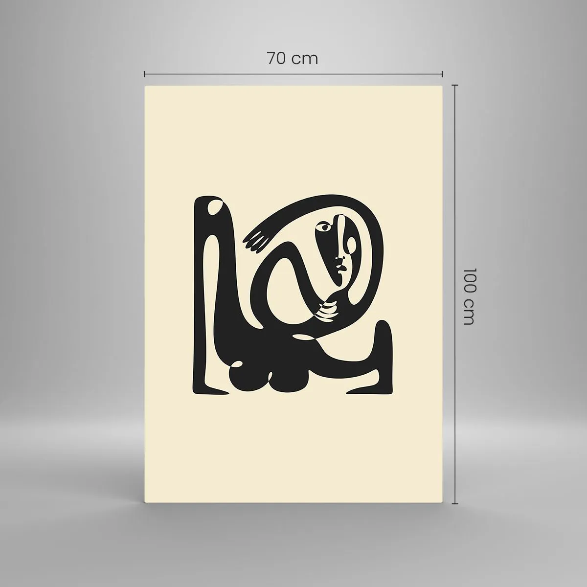 Glasbild - Bild auf glas - Eine abstrakte Figur in Schwarz auf beigem Hintergrund - 70x100cm - Fast wie Picasso - Moderne Wanddekoration für Wohnzimmer und Schlafzimmer ARTTOR