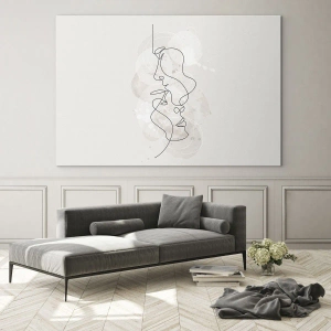 Glasbild - Bild auf glas - Eine minimalistische Zeichnung der Gesichter zweier Menschen in einer subtilen, sinnlichen Umarmung. - 100x70cm - Verstrickt in eine Umarmung - Moderne Wanddekoration für Wohnzimmer und Schlafzimmer ARTTOR