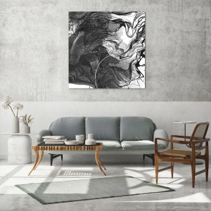 Glasbild - Bild auf glas - Schwarz-weiße Silhouette einer Frau mit abstrakten Linien - 120x80cm - Verstrickt in Träume - Moderne Wanddekoration für Wohnzimmer und Schlafzimmer ARTTOR