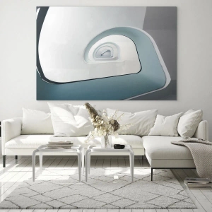Glasbild - Bild auf glas - Eine moderne Treppe in abstrakter Perspektive - 100x70cm - Bis zum Ende des Blaus - Moderne Wanddekoration für Wohnzimmer und Schlafzimmer ARTTOR