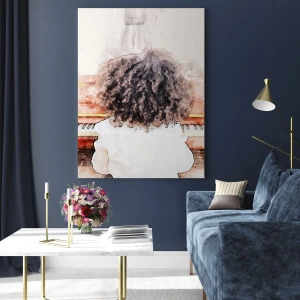 Glasbild - Bild auf glas - Ein Mädchen mit buschigem Haar am Klavier - 140x50cm - In der neuen Welt - Moderne Wanddekoration für Wohnzimmer und Schlafzimmer ARTTOR