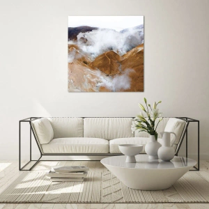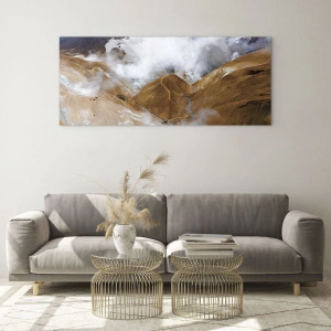 Glasbild - Bild auf glas - Eine Berglandschaft mit Dampf in einem rauen Klima - 160x50cm - Islands rohe Schönheit - Moderne Wanddekoration für Wohnzimmer und Schlafzimmer ARTTOR