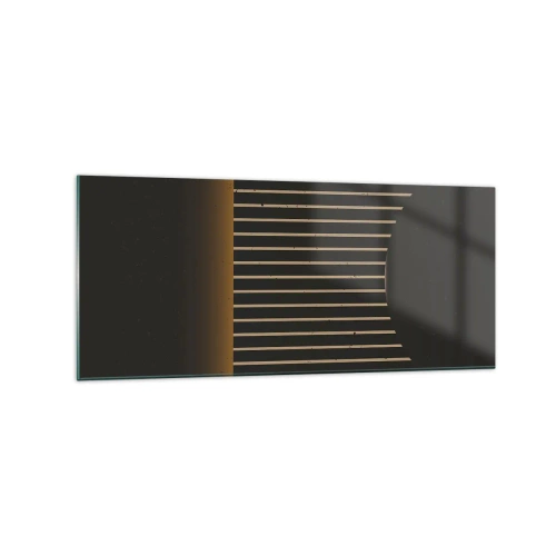Glasbild - Bild auf glas - Geometrisches Muster mit Streifen auf dunklem Hintergrund - 120x50cm - Die Dunkelheit erkunden - Moderne Wanddekoration für Wohnzimmer und Schlafzimmer ARTTOR