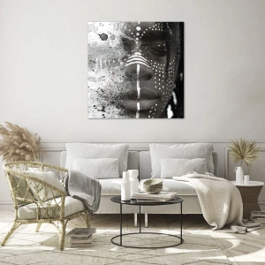 Glasbild - Bild auf glas - Porträt mit Ethno-Muster in Schwarz-Weiß mit Aquarelleffekt - 120x80cm - Entdecke den Urgeist - Moderne Wanddekoration für Wohnzimmer und Schlafzimmer ARTTOR