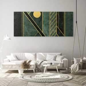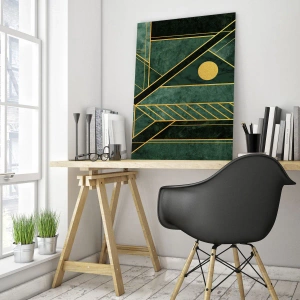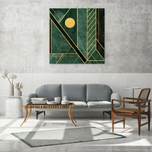 • Abstrakt, Kunst, Geometrisches Muster, Abstraktionen, Für das Büro, für das Arbeitszimmer, für das Esszimmer, für den Flur, für das Wohnzimmer, für das Schlafzimmer, Grün Gold, Quadrat