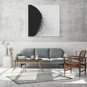 Glasbild - Bild auf glas - Abstraktes Muster mit schwarzen Partikeln auf hellem Hintergrund - 70x100cm - Bewegung von Molekülen - Moderne Wanddekoration für Wohnzimmer und Schlafzimmer ARTTOR