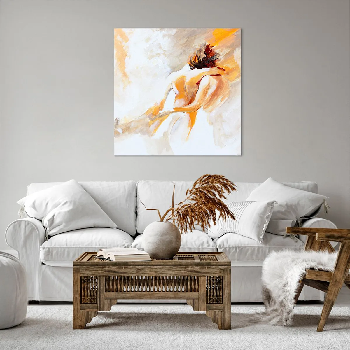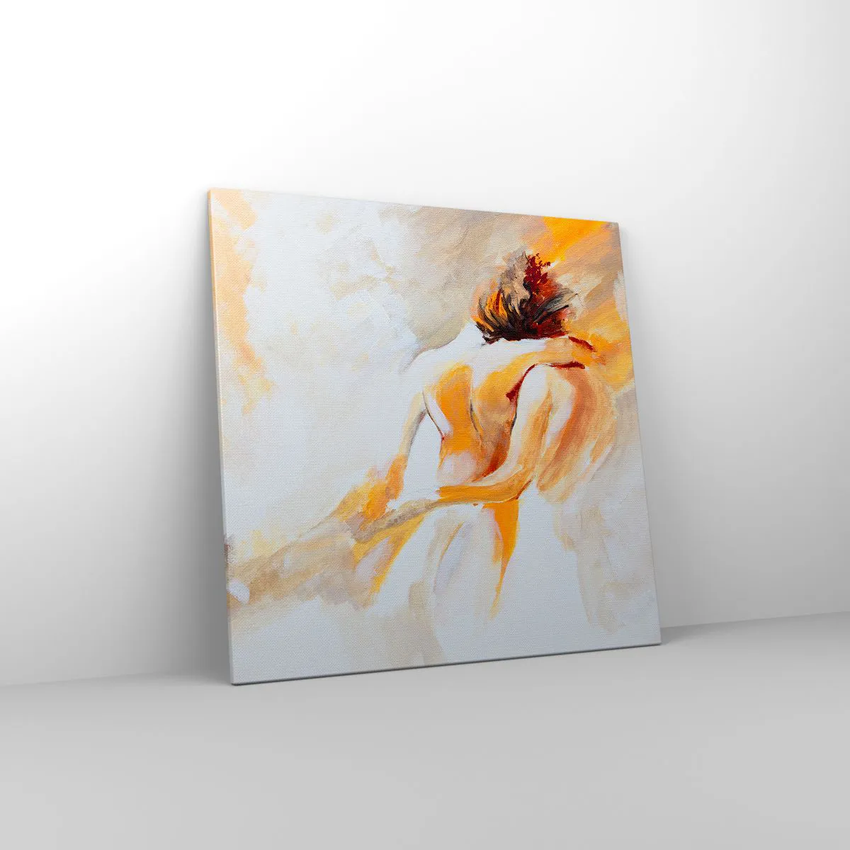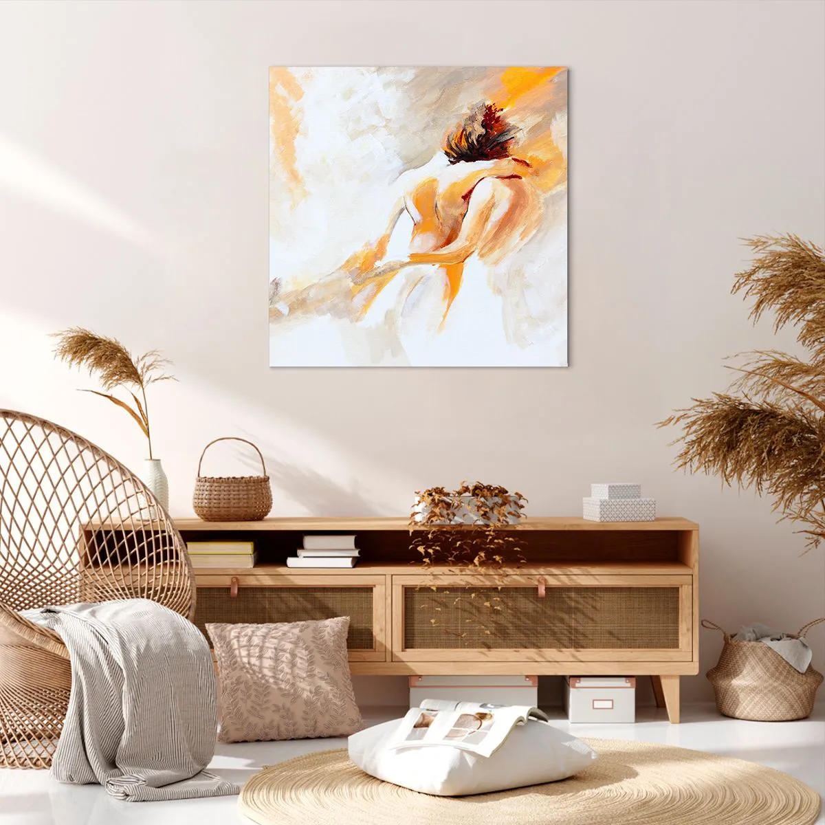 • Kunst, Verliebtes Paar, Liebe, Menschen, Kunst, Für den Flur, für das Wohnzimmer, für das Schlafzimmer, Weiß, Orange, Grau, Quadrat