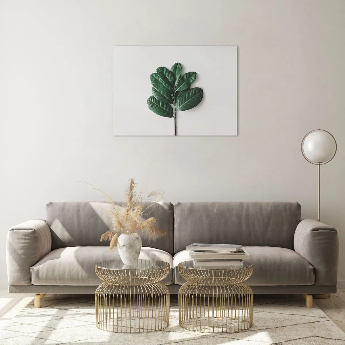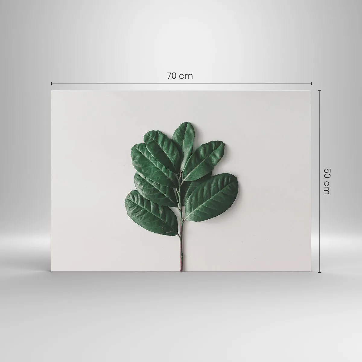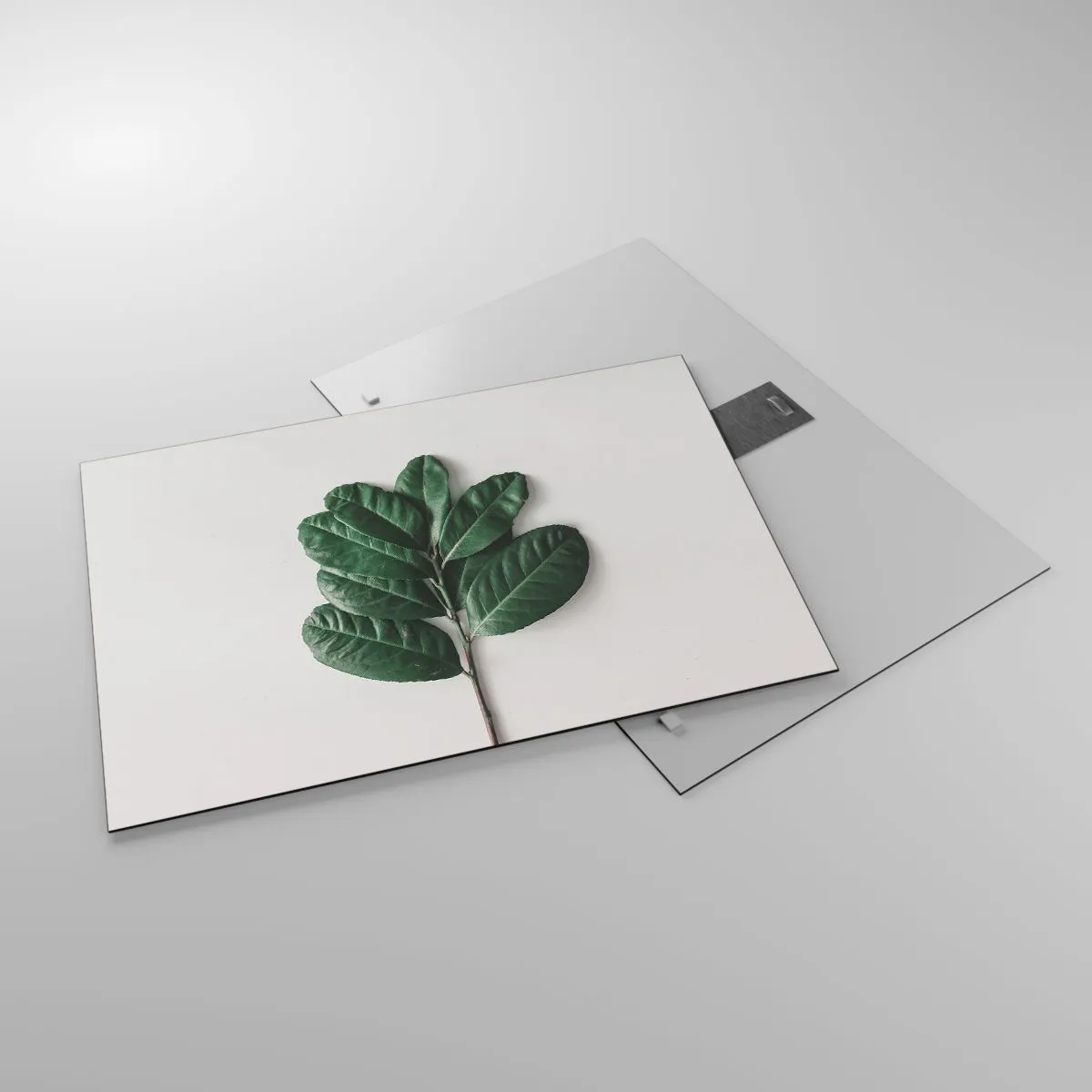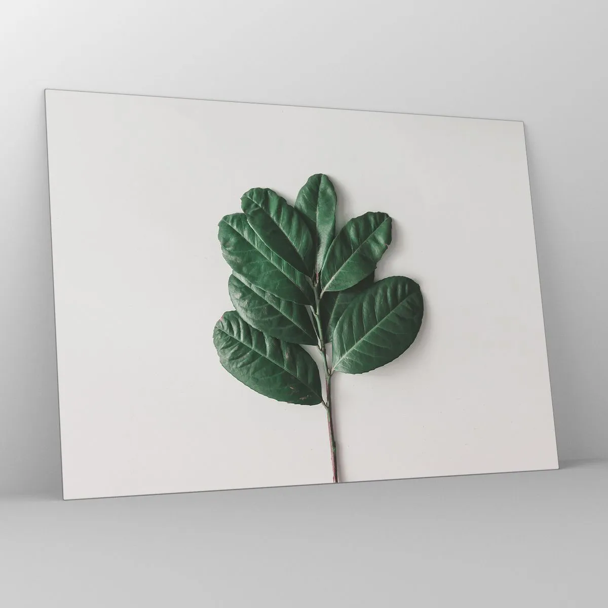 Glasbild - Bild auf glas - Ein Zweig mit grünen Blättern auf hellem Hintergrund - 70x50cm - Eine Zeichnung purer Natur - Moderne Wanddekoration für Wohnzimmer und Schlafzimmer ARTTOR