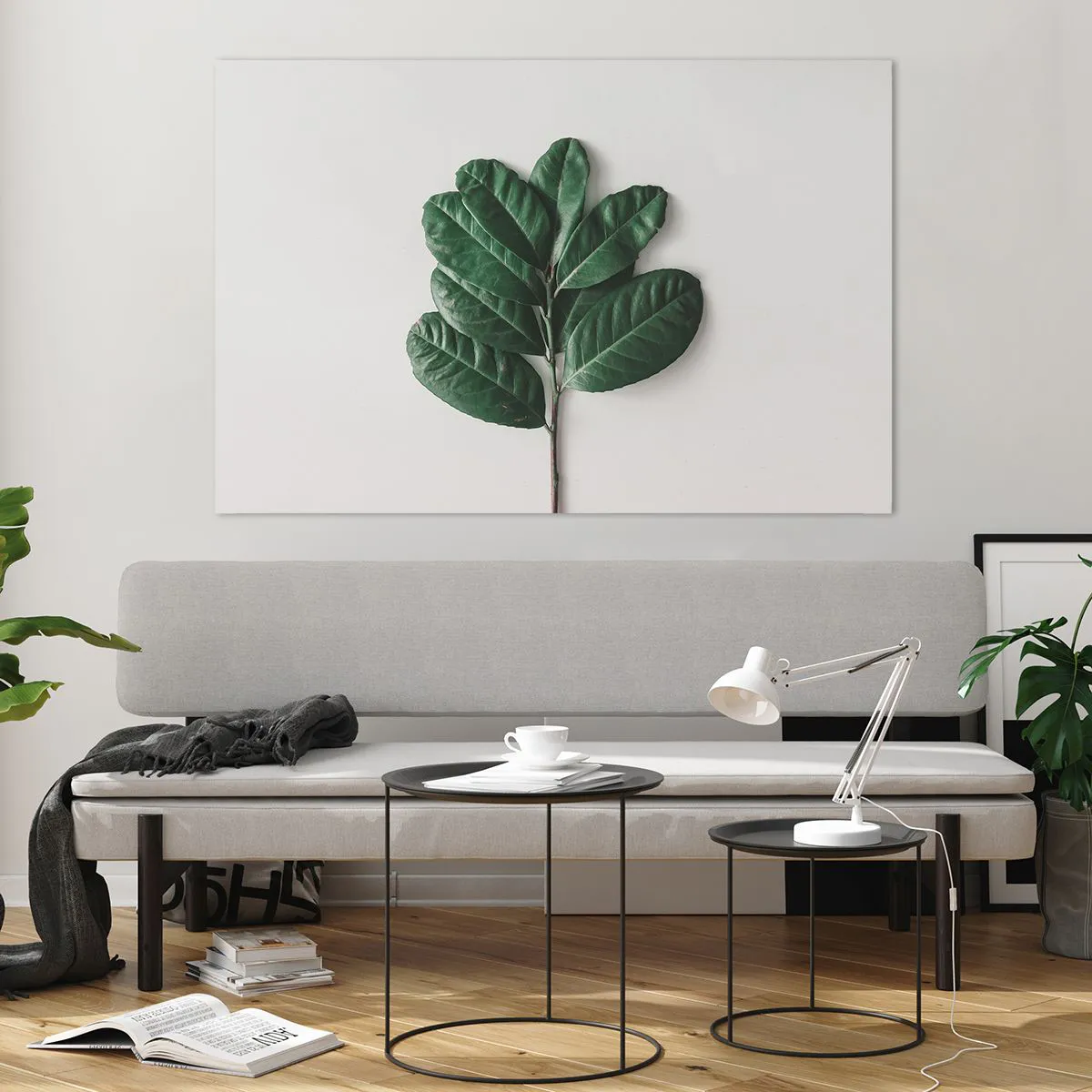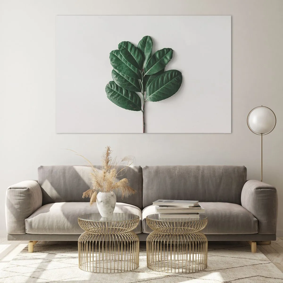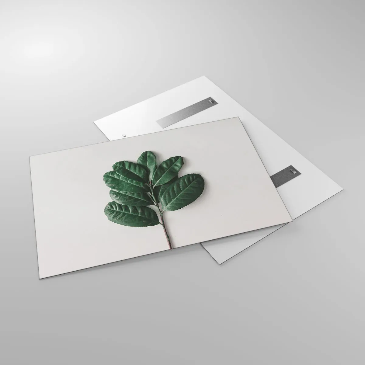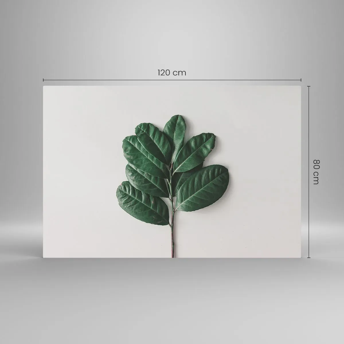 Glasbild - Bild auf glas - Ein Zweig mit grünen Blättern auf hellem Hintergrund - 120x80cm - Eine Zeichnung purer Natur - Moderne Wanddekoration für Wohnzimmer und Schlafzimmer ARTTOR