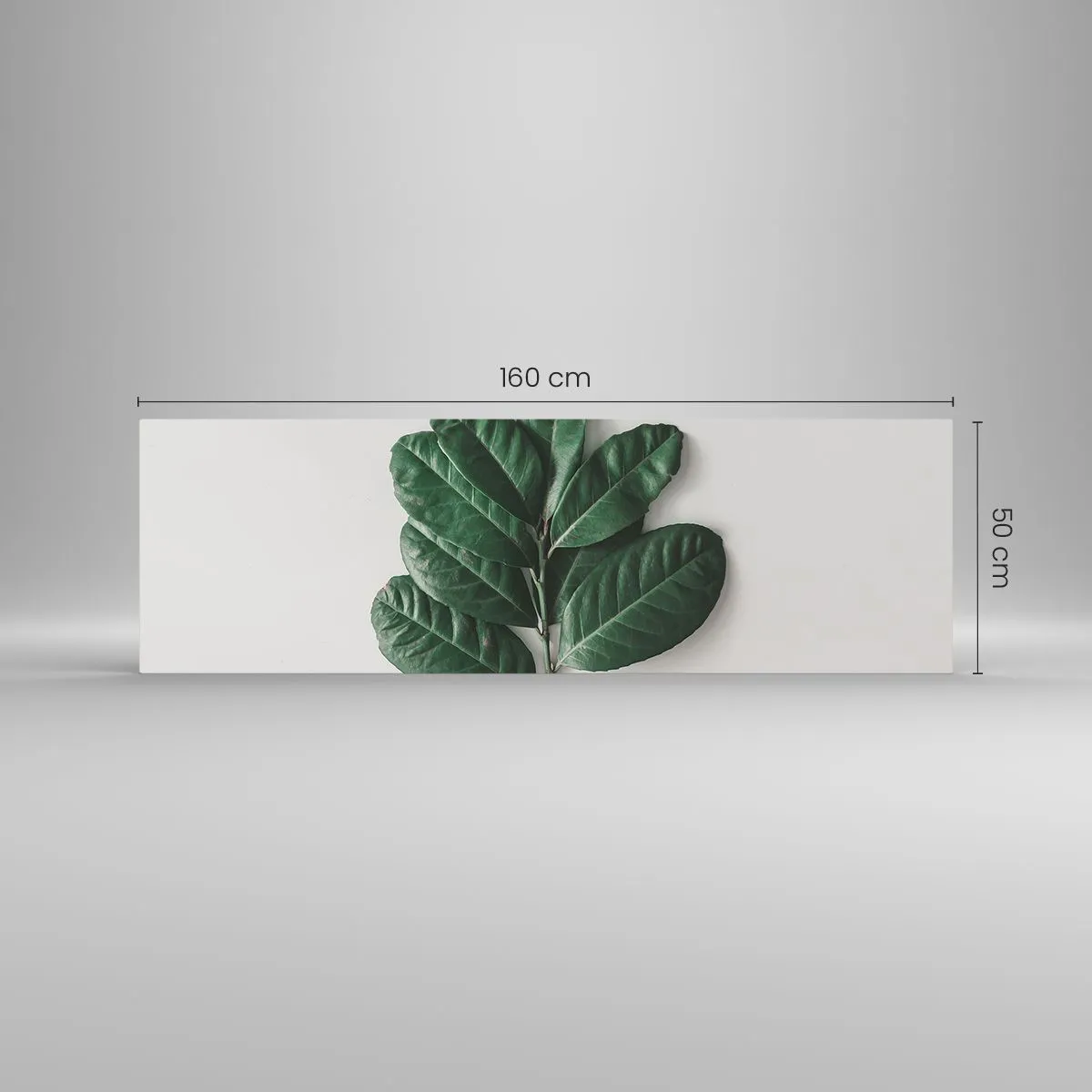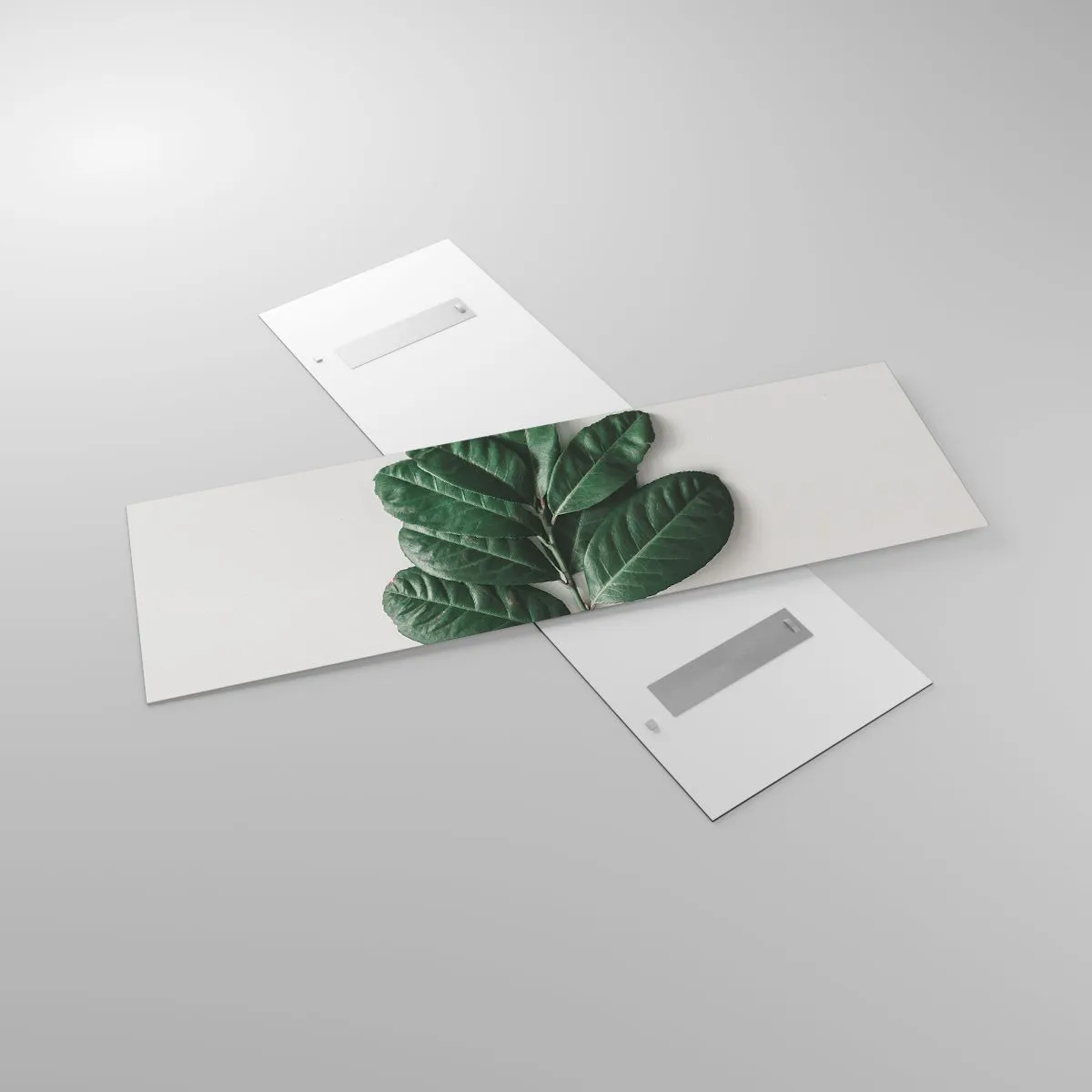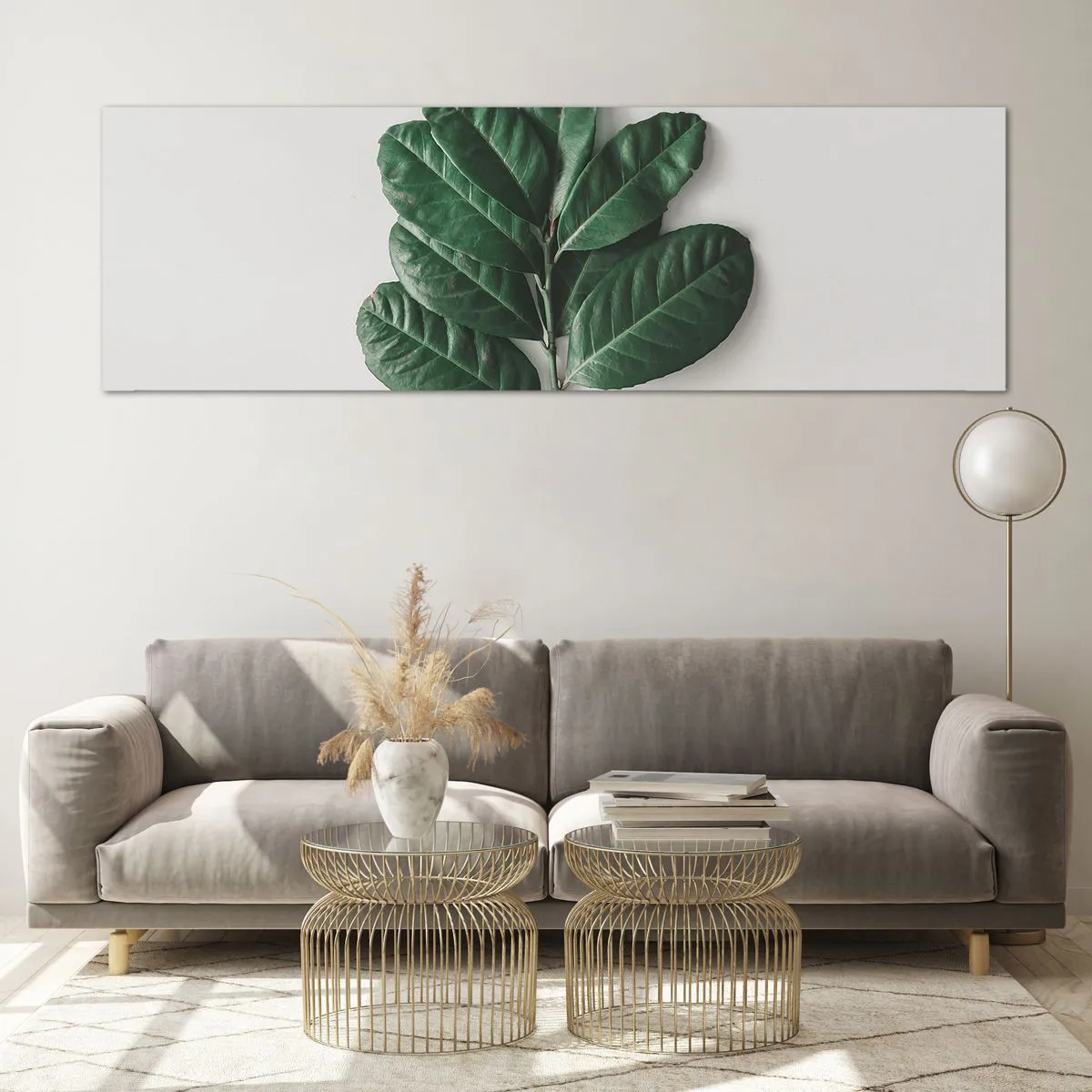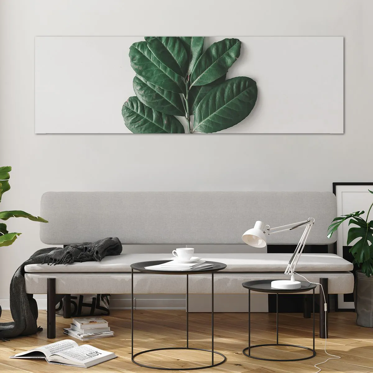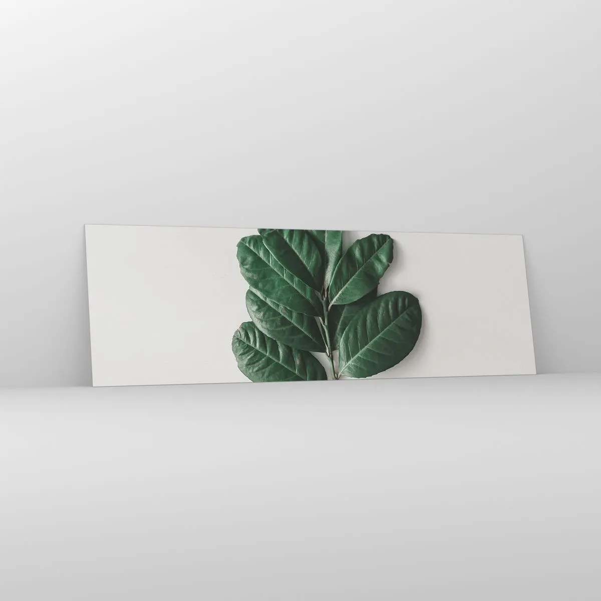 Glasbild - Bild auf glas - Ein Zweig grüner Blätter auf hellem Hintergrund - 160x50cm - Eine Zeichnung purer Natur - Moderne Wanddekoration für Wohnzimmer und Schlafzimmer ARTTOR