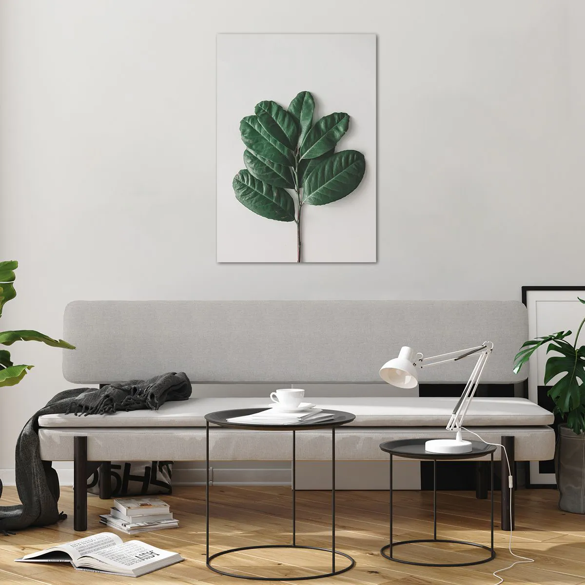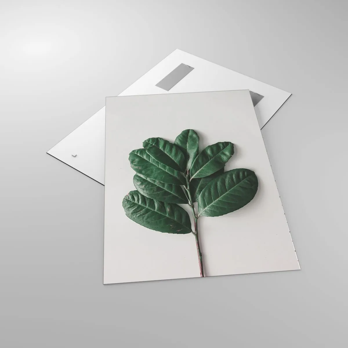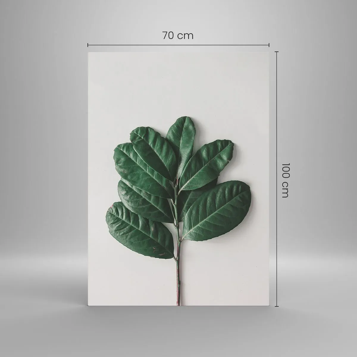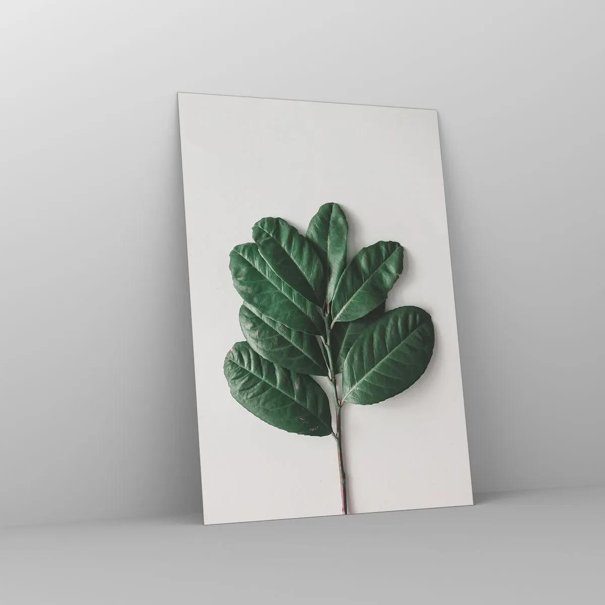 Glasbild - Bild auf glas - Ein Zweig grüner Blätter auf hellem Hintergrund - 70x100cm - Eine Zeichnung purer Natur - Moderne Wanddekoration für Wohnzimmer und Schlafzimmer ARTTOR