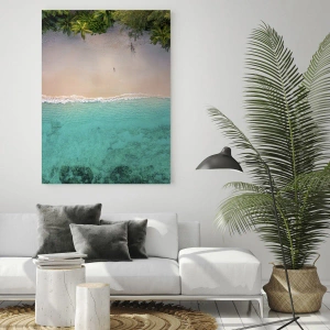 Glasbild - Bild auf glas - Luftaufnahme eines tropischen Strandes und des türkisfarbenen Meeres - 100x70cm - Paradiesstrand - Moderne Wanddekoration für Wohnzimmer und Schlafzimmer ARTTOR