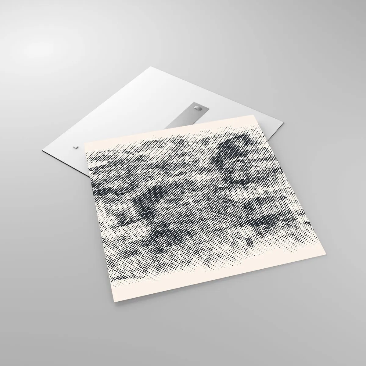 Das Bild auf dem Glas besteht aus 4mm dickem Glas. Die Kanten des Glases haben einen matten Trapezschliff. Das Bild ist sicher zu verwenden und fertig zum Aufhängen - es hat Metallaufhänger an der Rückseite des Bildes und Schaumstoff Abstandshalter, die den gleichmäßigen Abstand des Bildes von der Wand regulieren.