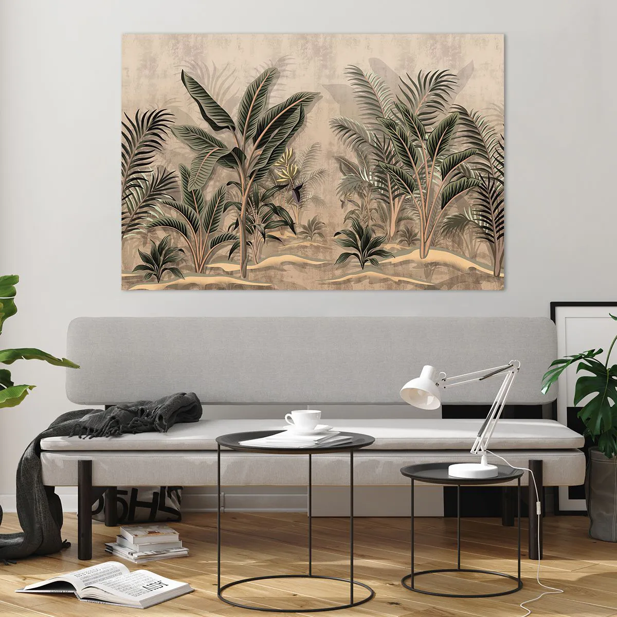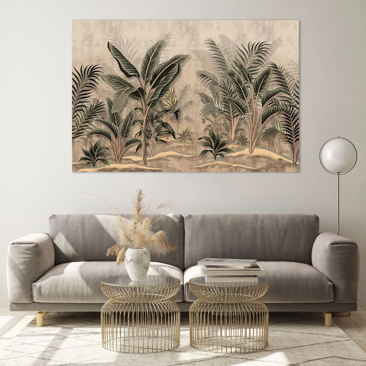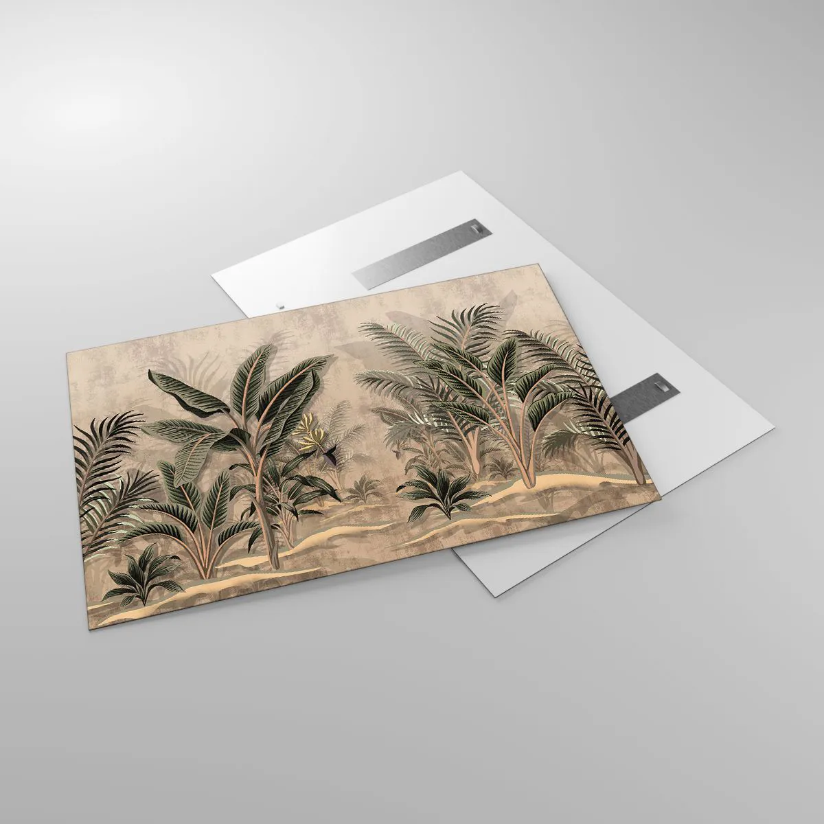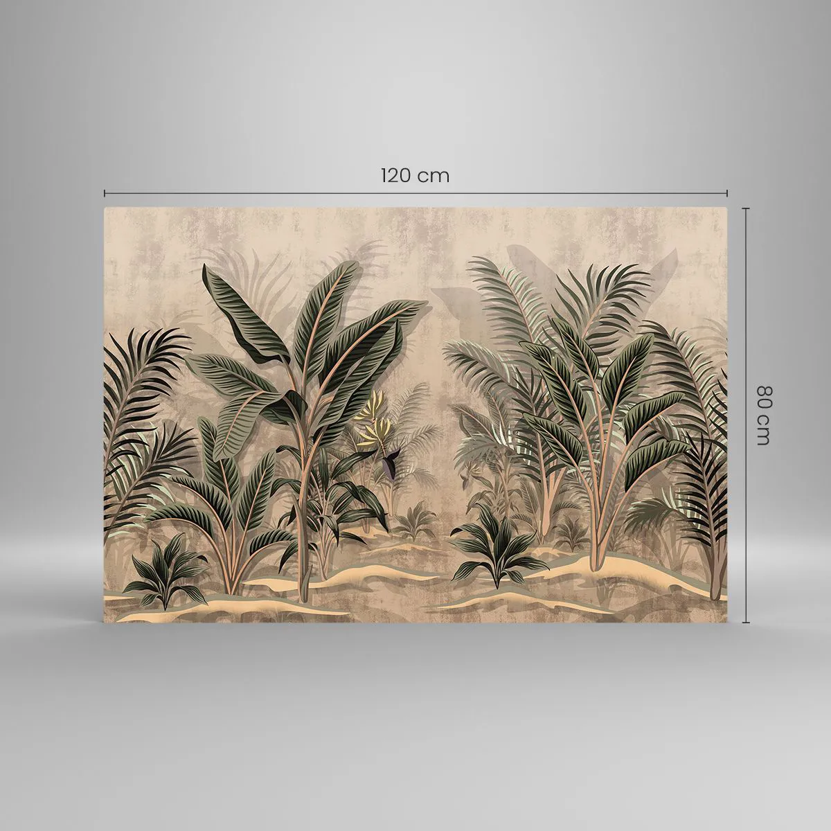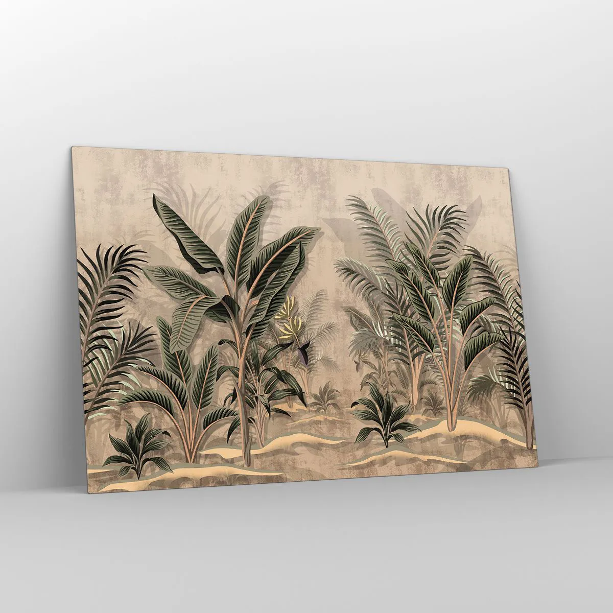 Glasbild - Bild auf glas - Tropische Pflanzen auf beigem Untergrund im Kolonialstil - 120x80cm - Eine Gravur im Kolonialstil - Moderne Wanddekoration für Wohnzimmer und Schlafzimmer ARTTOR