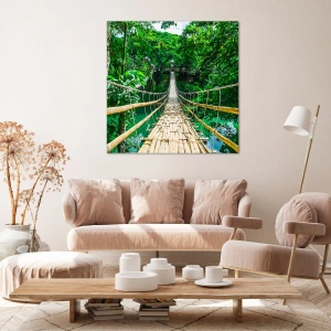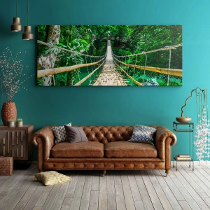 Bild auf Leinwand - Leinwandbild - Eine hängende Bambusbrücke, umgeben von Grün - 100x70cm - Monkey Bridge über das Grün - Moderne Wanddekoration für Wohnzimmer und Schlafzimmer ARTTOR