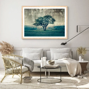 Poster in einem Rahmen aus heller Eiche - Ein Apfelbaum auf blauem Feld? - 50x50 cm
