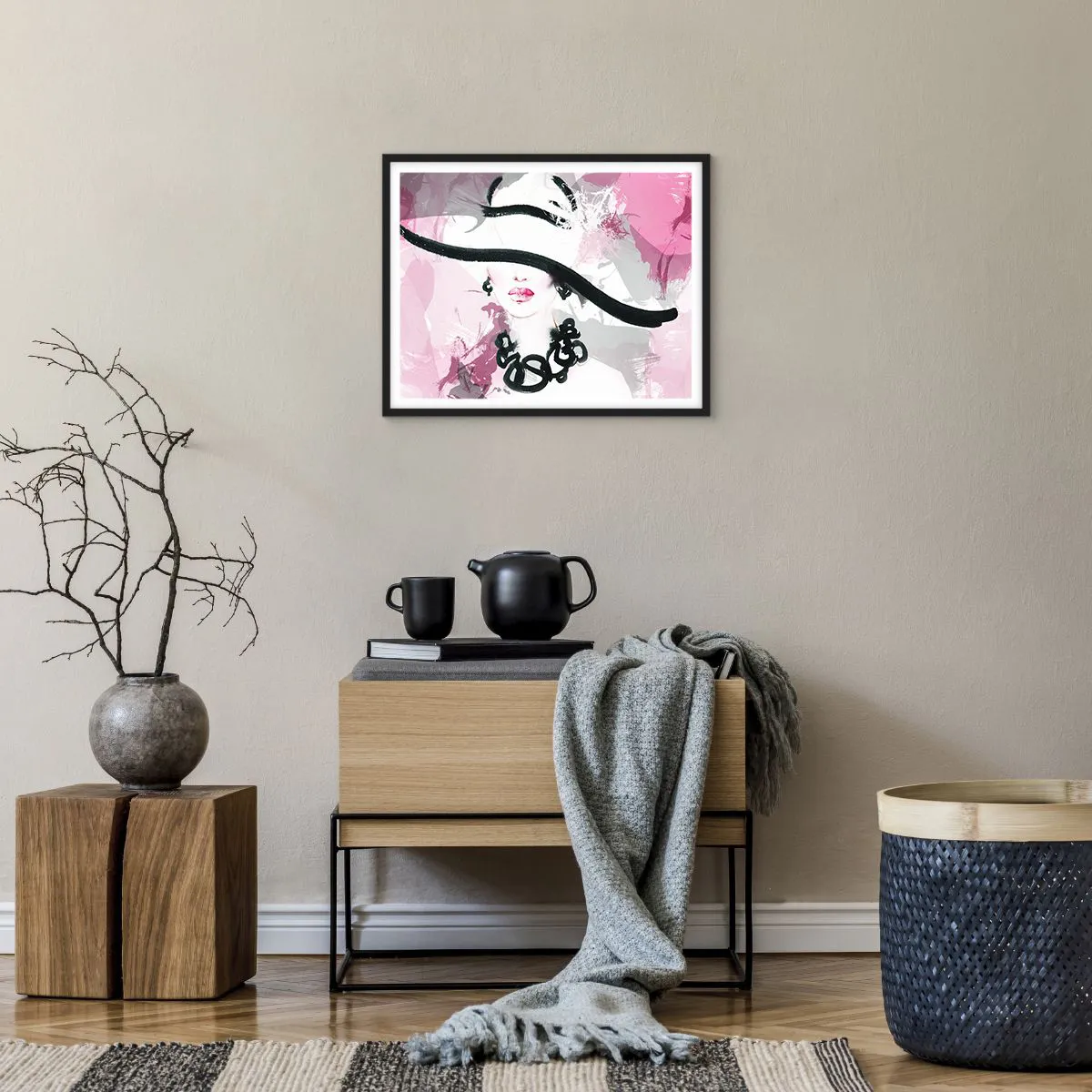 Poster in einem schwarzem Rahmen - Bildnis einer Dame in Schwarz und Pink - 50x40 cm