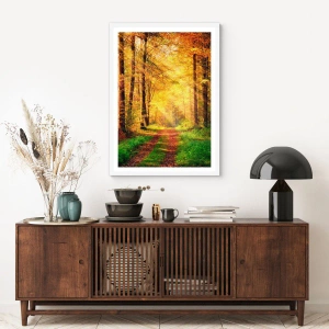 Poster in einem weißen Rahmen - Waldgoldene Stille - 70x100 cm