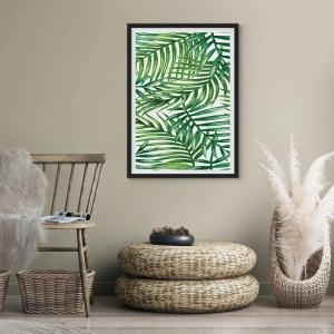 Poster in einem schwarzem Rahmen - Palmen in einem minimalistischen botanischen Muster - 50x70cm - Unter dem grünen Baldachin - Moderne Wanddekoration für Wohnzimmer und Schlafzimmer ARTTOR