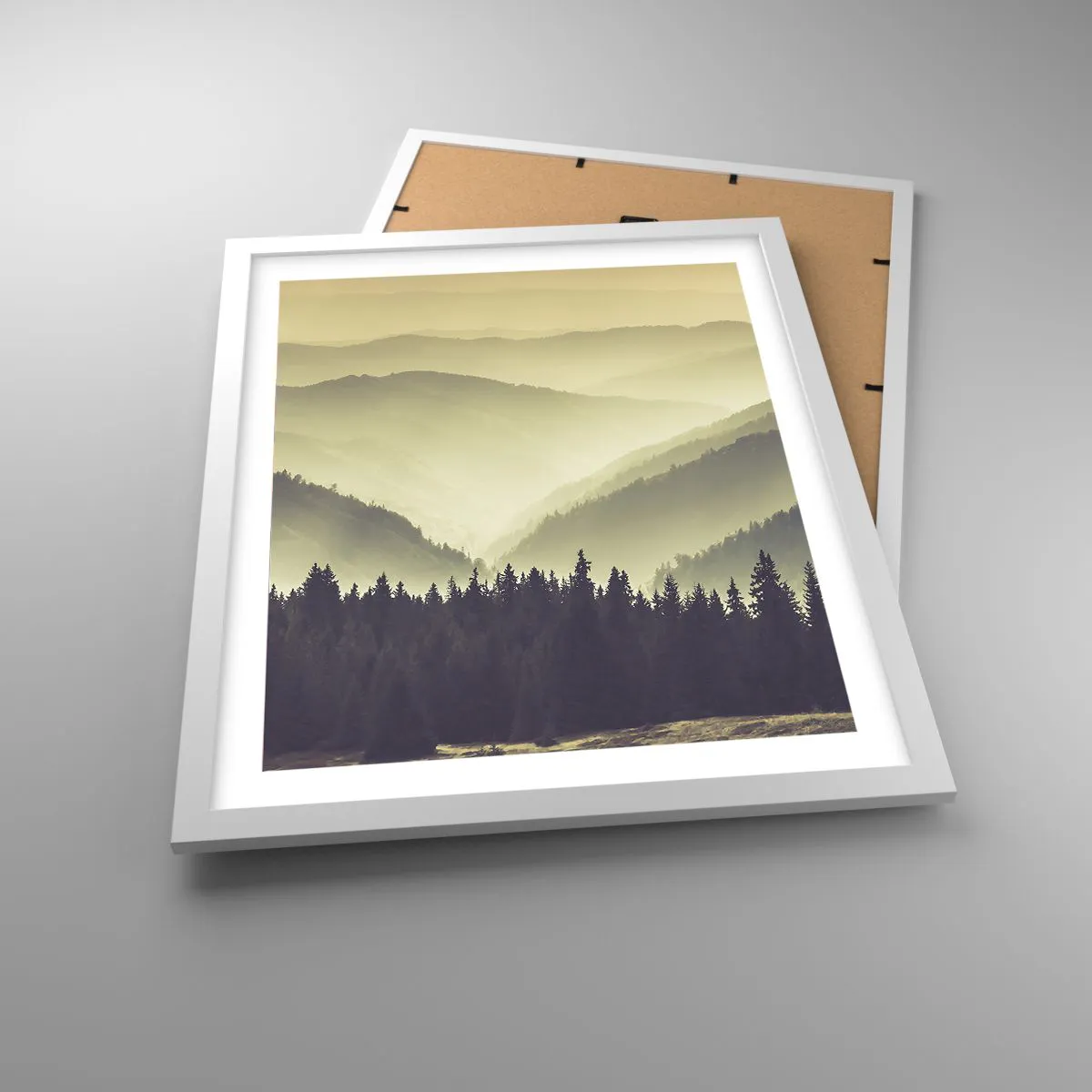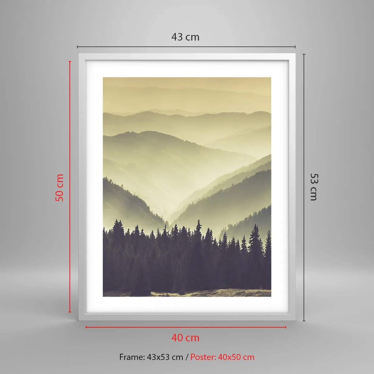 Poster in einem weißen Rahmen - Hinter den sieben Bergen ... - 40x50 cm