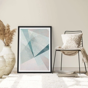Poster in einem schwarzem Rahmen - Geometrische Formen in Pastelltönen von Blau und Grau - 70x50cm - Einfach aber dynamisch - Moderne Wanddekoration für Wohnzimmer und Schlafzimmer ARTTOR