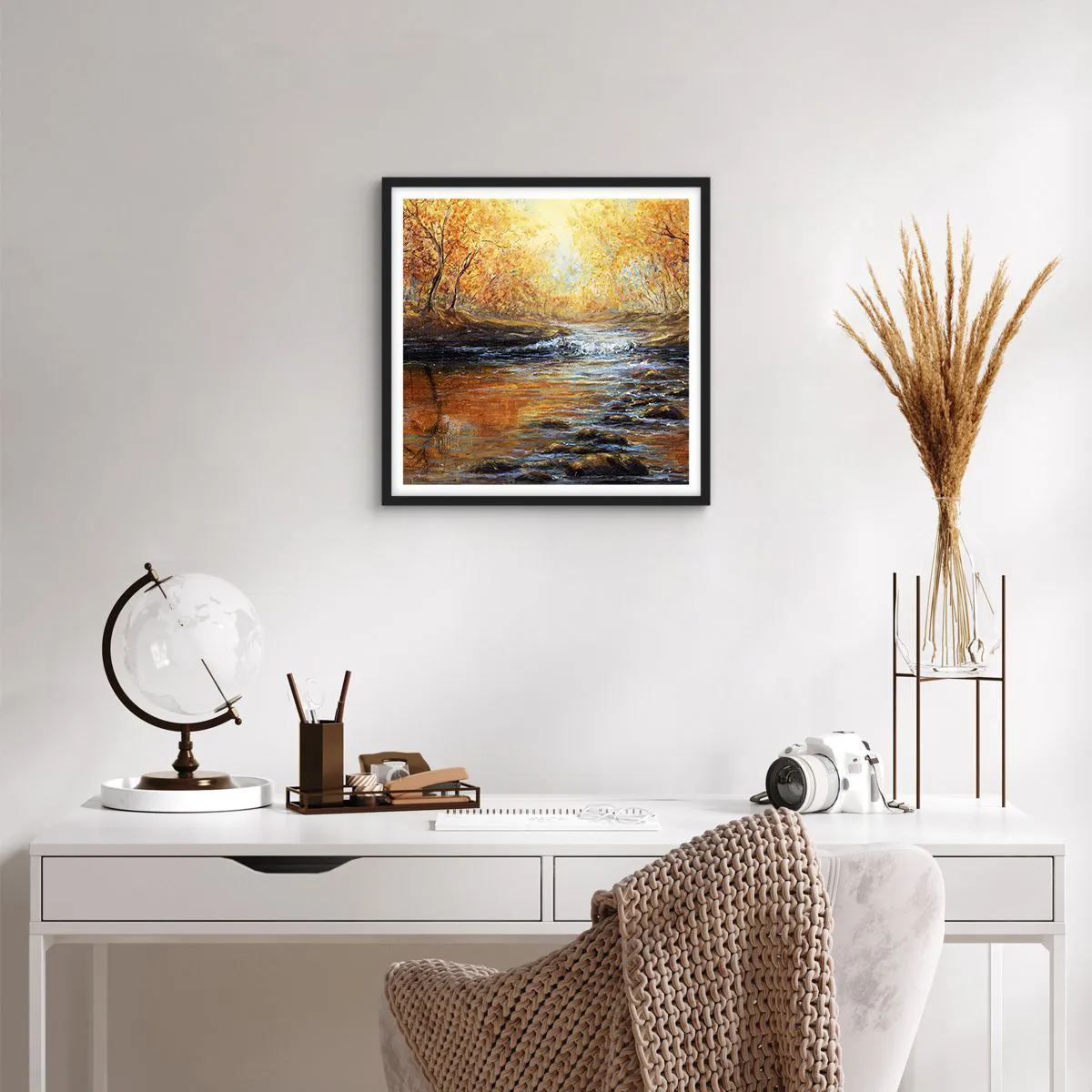 Poster in einem schwarzem Rahmen - Der goldene Strom - 40x40 cm