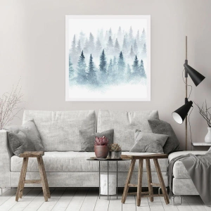 Poster - Aquarelllandschaft mit einem Wald im Nebel - 50x70cm - In Nebel gehüllt - Moderne Wanddekoration für Wohnzimmer und Schlafzimmer ARTTOR