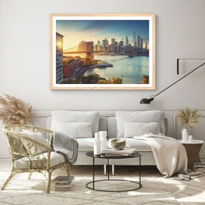 Poster in einem Rahmen aus heller Eiche - Morgendämmerung der Großstadt - 30x30 cm