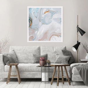 Poster - Abstrakte Wellen in Blau- und Weißtönen - 100x70cm - Das Weiß wird erhoben - Moderne Wanddekoration für Wohnzimmer und Schlafzimmer ARTTOR