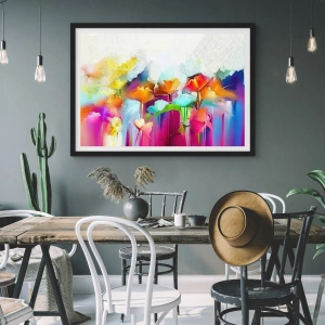 Poster in einem schwarzem Rahmen - Abstrakte Blumen in intensiven Farben auf weißem Hintergrund - 50x70cm - Der Regenbogen ist aufgeblüht - Moderne Wanddekoration für Wohnzimmer und Schlafzimmer ARTTOR