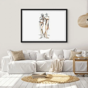 Poster in einem schwarzem Rahmen - Abstrakte Skizze zweier Figuren in warmen Farben. - 50x70cm - Studie der Gnade - Moderne Wanddekoration für Wohnzimmer und Schlafzimmer ARTTOR