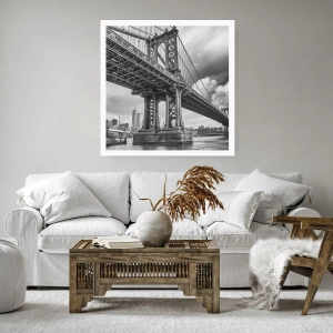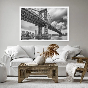 Poster - Eine Brücke in Schwarz-Weiß mit Blick auf die Stadt - 100x70cm - Ins Herz der Stadt - Moderne Wanddekoration für Wohnzimmer und Schlafzimmer ARTTOR