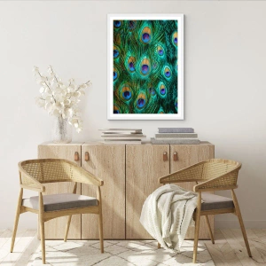 Poster in einem weißen Rahmen - Ein Blick mit Pfauenaugen - 50x50 cm