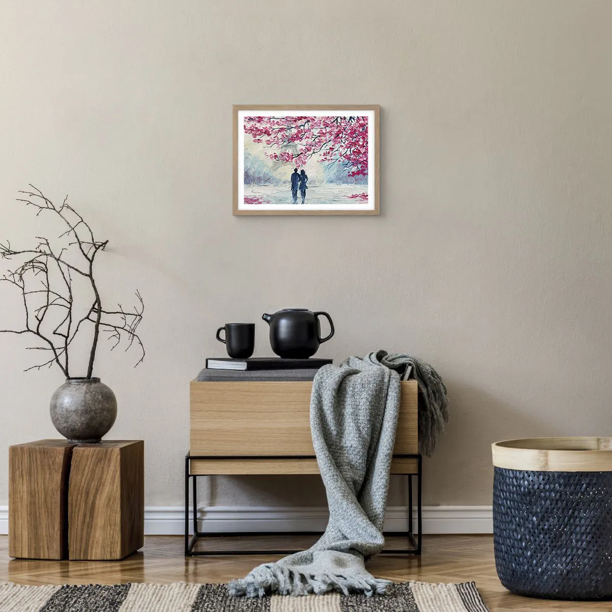 Poster in einem Rahmen aus heller Eiche - Romantischer Spaziergang - 40x30 cm