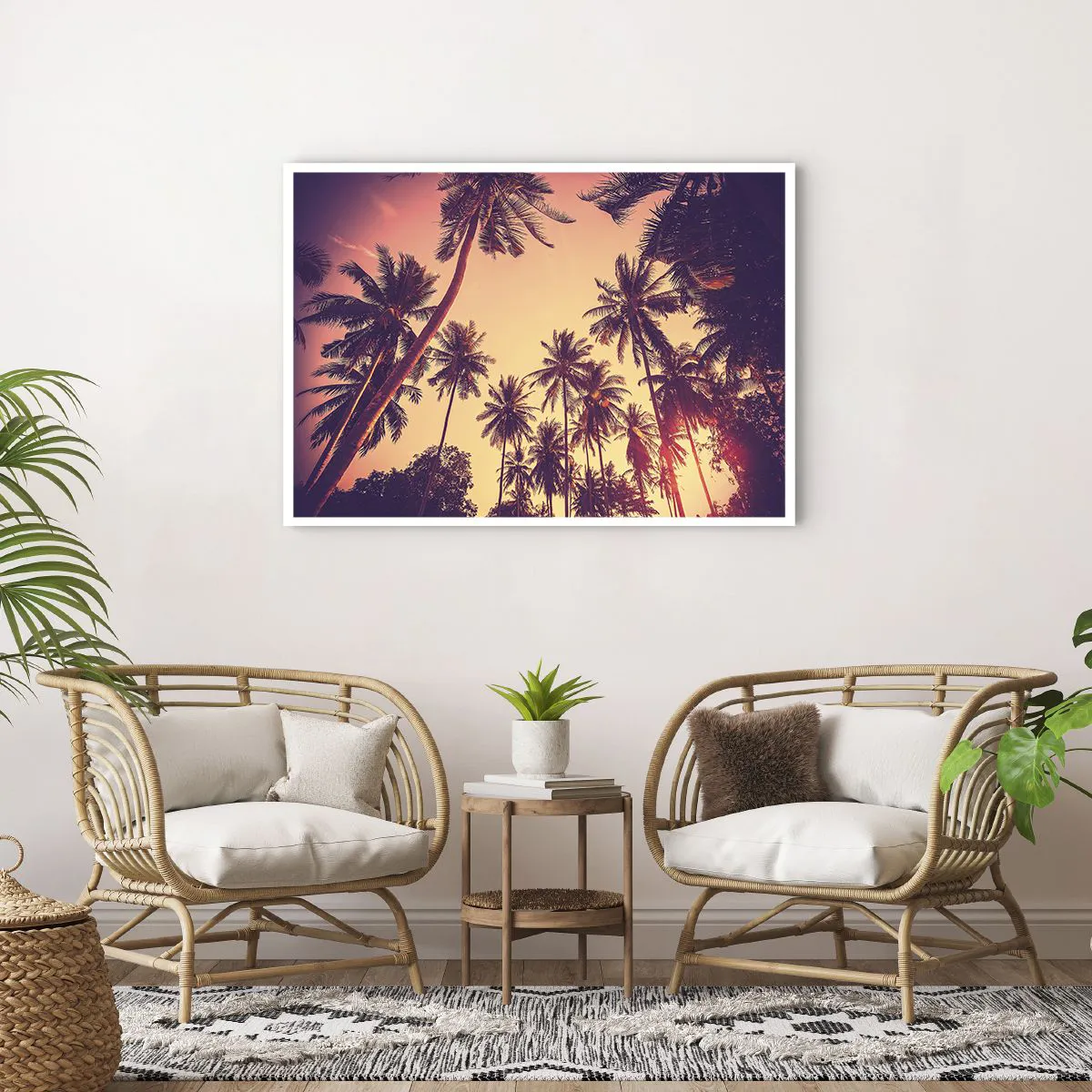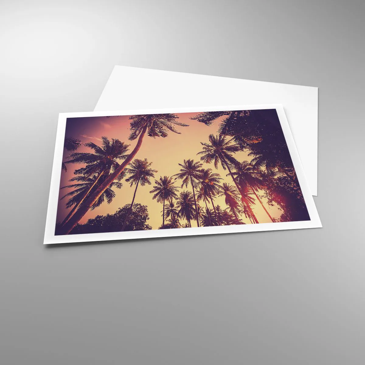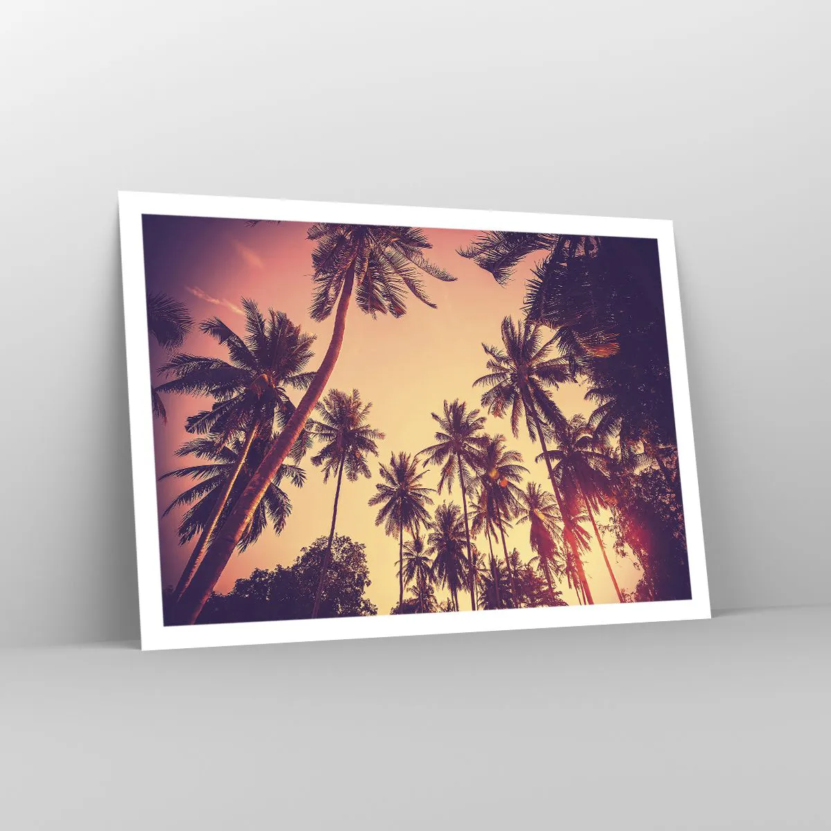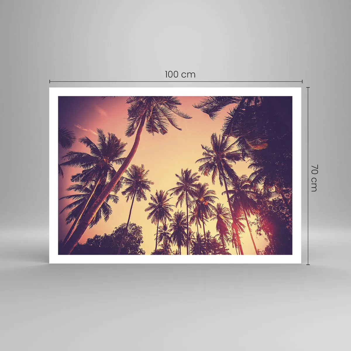 Poster - Palmen vor dem Himmel mit warmen Sonnenuntergangsfarben - 100x70cm - Tropische Variante - Moderne Wanddekoration für Wohnzimmer und Schlafzimmer ARTTOR