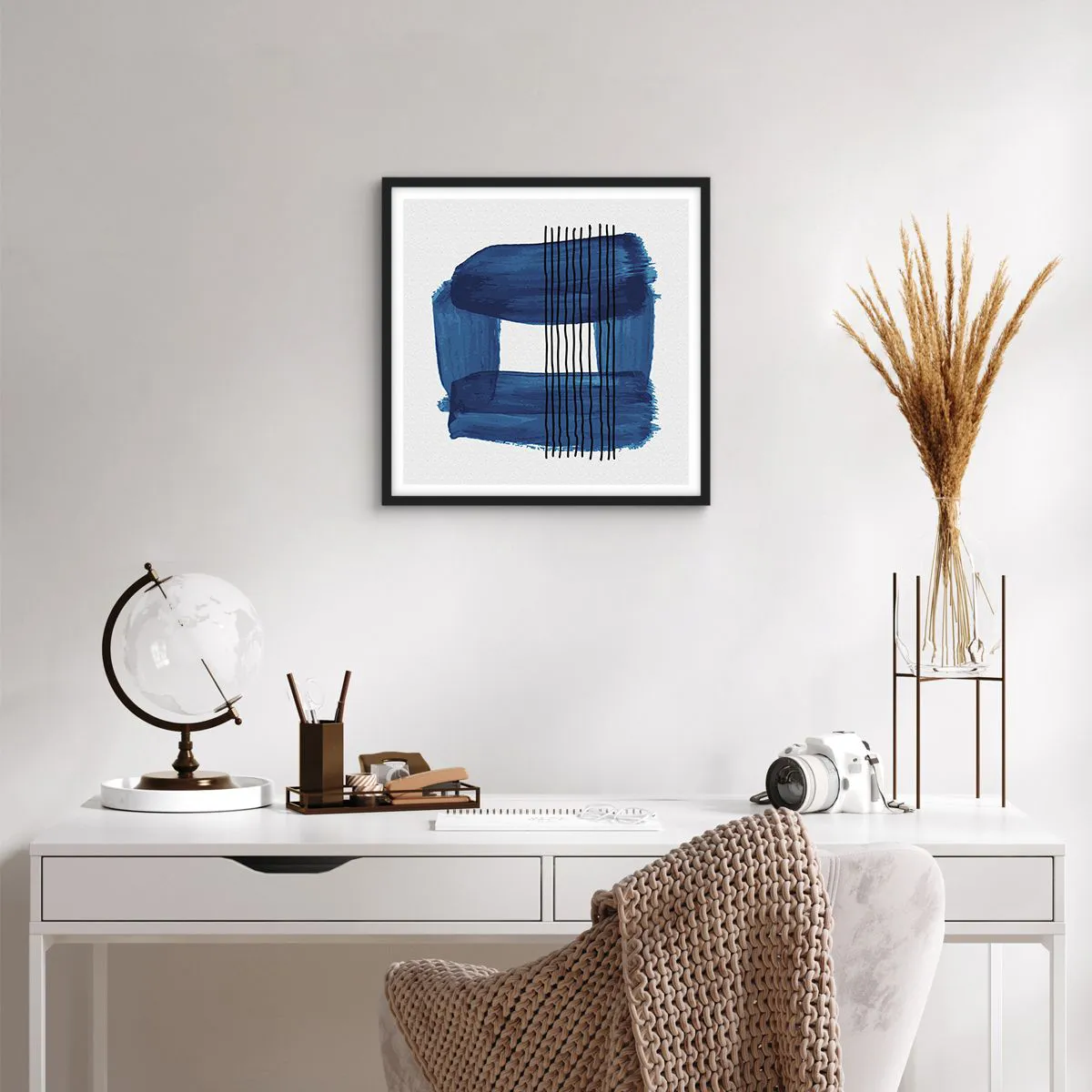 Poster in einem schwarzem Rahmen - Blaue und schwarze Komposition - 40x40 cm