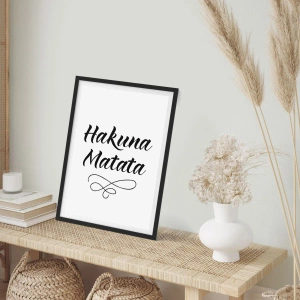 Poster in einem schwarzem Rahmen - Hakuna Matata-Zitat in eleganter Schriftart auf weißem Hintergrund - 70x50cm - Bester Ratschlag - Moderne Wanddekoration für Wohnzimmer und Schlafzimmer ARTTOR