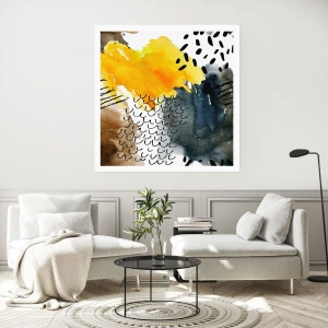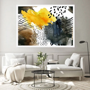 Poster - Abstrakte Komposition in Gelb- und Schwarztönen - 50x70cm - Ein Treffen der Elemente der Natur - Moderne Wanddekoration für Wohnzimmer und Schlafzimmer ARTTOR