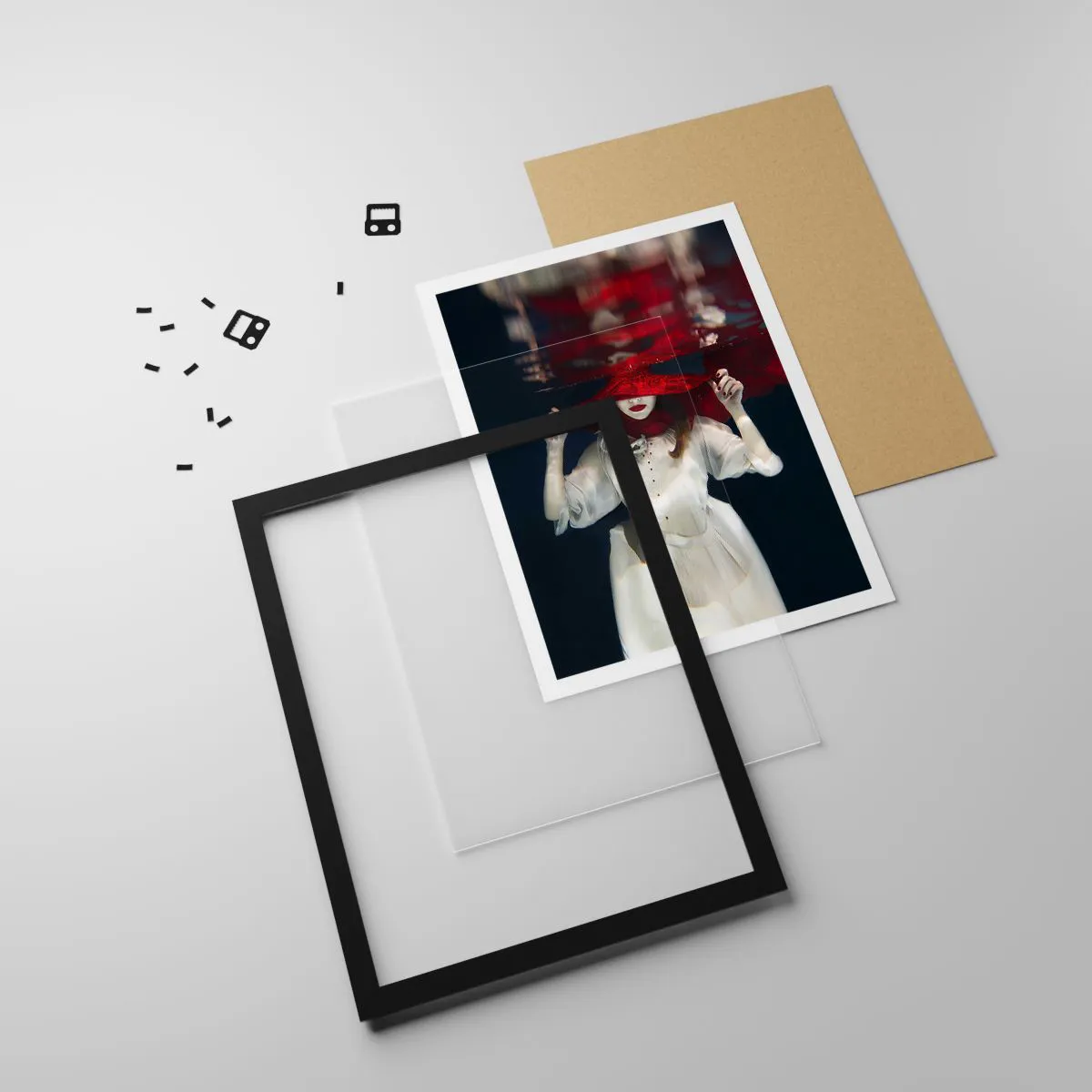 - Das Poster „Dziwożona“ zeigt eine Frau mit rotem Hut, die unter Wasser getaucht ist. Dieses geheimnisvolle und künstlerische Motiv passt perfekt in moderne Innenräume. Das Produkt wird mit einem schwarzen Rahmen geliefert.