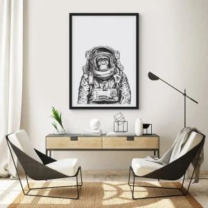 Poster in einem schwarzem Rahmen - Grafik eines Astronauten im Raumanzug mit Affenkopf - 70x50cm - Alternative Evolution - Moderne Wanddekoration für Wohnzimmer und Schlafzimmer ARTTOR