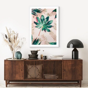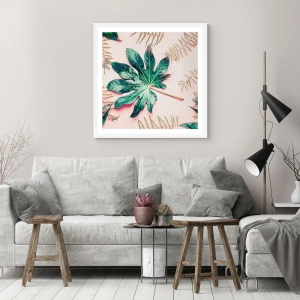 Poster in einem weißen Rahmen - Eine Studie von Grün auf einem rosa Hintergrund - 30x30 cm
