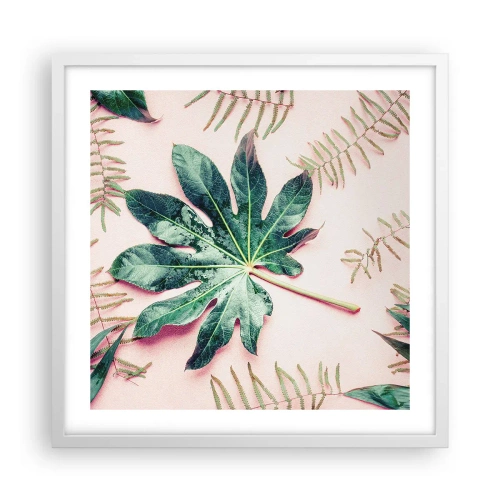 Poster in einem weißen Rahmen - Eine Studie von Grün auf einem rosa Hintergrund - 50x50 cm