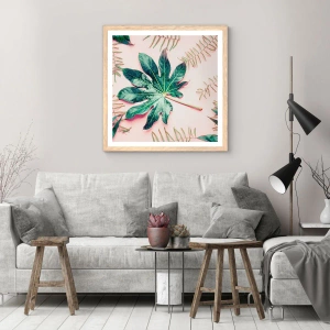 Poster in einem Rahmen aus heller Eiche - Eine Studie von Grün auf einem rosa Hintergrund - 50x70 cm
