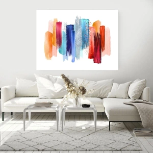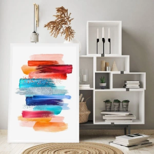 Poster - Bunte Pinselstriche auf weißem Hintergrund - 100x70cm - Auf und ab - Moderne Wanddekoration für Wohnzimmer und Schlafzimmer ARTTOR