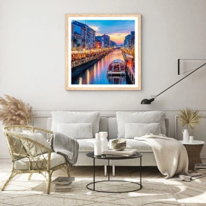 Poster in einem Rahmen aus heller Eiche - Ein Abend voller Licht und Spaß - 70x50 cm