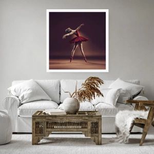 Poster - Eine Balletttänzerin in einem roten Kleid vor dem Hintergrund einer Bühne - 100x70cm - Eine Primaballerina - Moderne Wanddekoration für Wohnzimmer und Schlafzimmer ARTTOR
