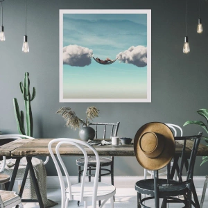 Poster - Eine Person entspannt in einer Hängematte in den Wolken - 100x70cm - Die Behaglichkeit des Augenblicks - Moderne Wanddekoration für Wohnzimmer und Schlafzimmer ARTTOR