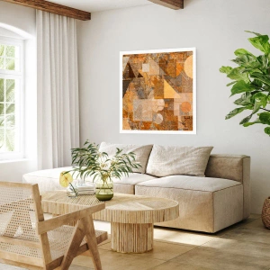 Poster - Abstrakte geometrische Figuren in warmen Farbtönen - 100x70cm - Eine kubistische Studie aus Bronze - Moderne Wanddekoration für Wohnzimmer und Schlafzimmer ARTTOR