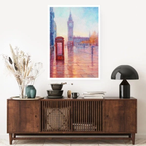 Poster - Londoner Straße mit Big Ben an einem regnerischen Tag - 100x70cm - Londoner Herbsttag - Moderne Wanddekoration für Wohnzimmer und Schlafzimmer ARTTOR