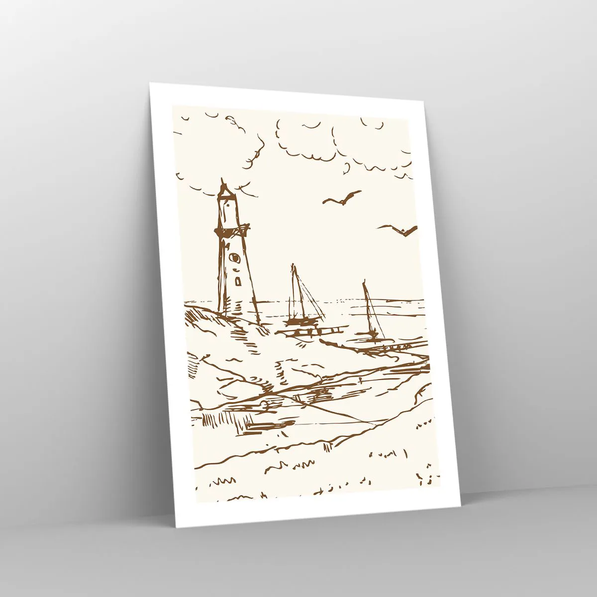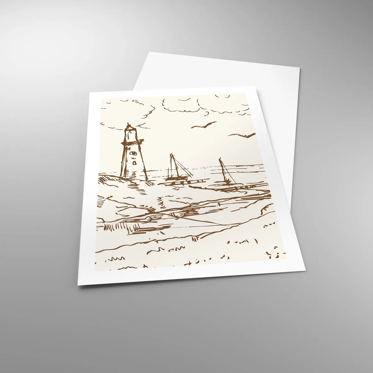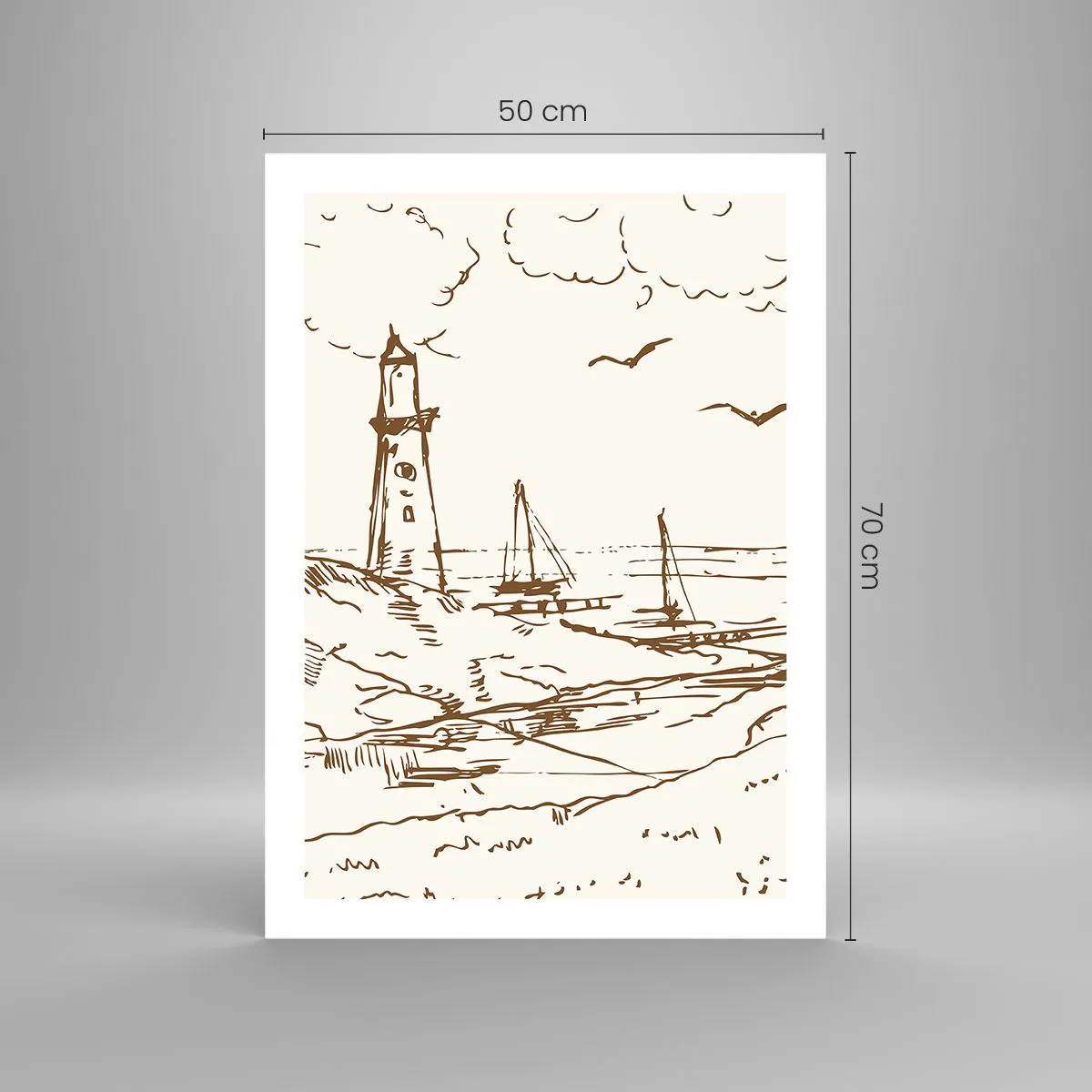 Poster - Leuchtturm mit Booten und Vögeln - 50x70cm - Ein Überblick über die Erinnerungen an den Sommer - Moderne Wanddekoration für Wohnzimmer und Schlafzimmer ARTTOR